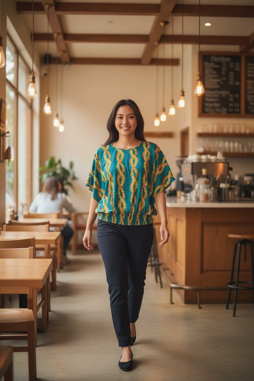 The elegant Hawaiian pattern creates a casual and stylish look.
