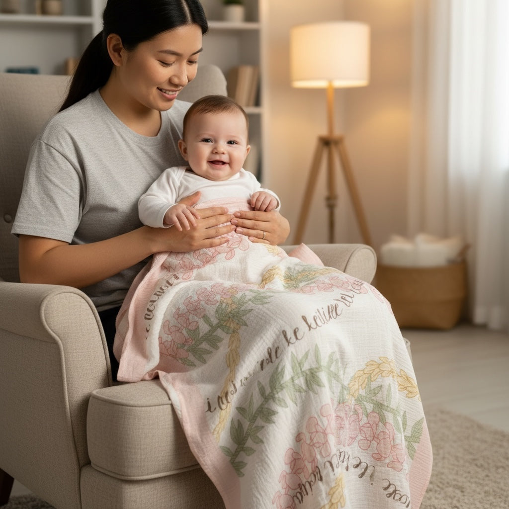 ふんわり育つ、綿100%の大判ガーゼブランケット。
